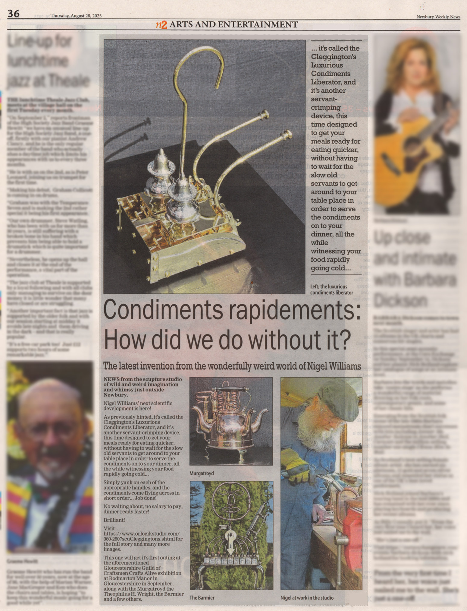 Nigel Williams has been featured on the front page of the Arts & Entertainment section of the Newbury Weekly News yet again, courtesy of the newspaper's Arts Editor Trish Lee, with an article describing Condiments rapidements, as mentioned above. Read the full article here. This content can also be viewed on the newspaper's website.